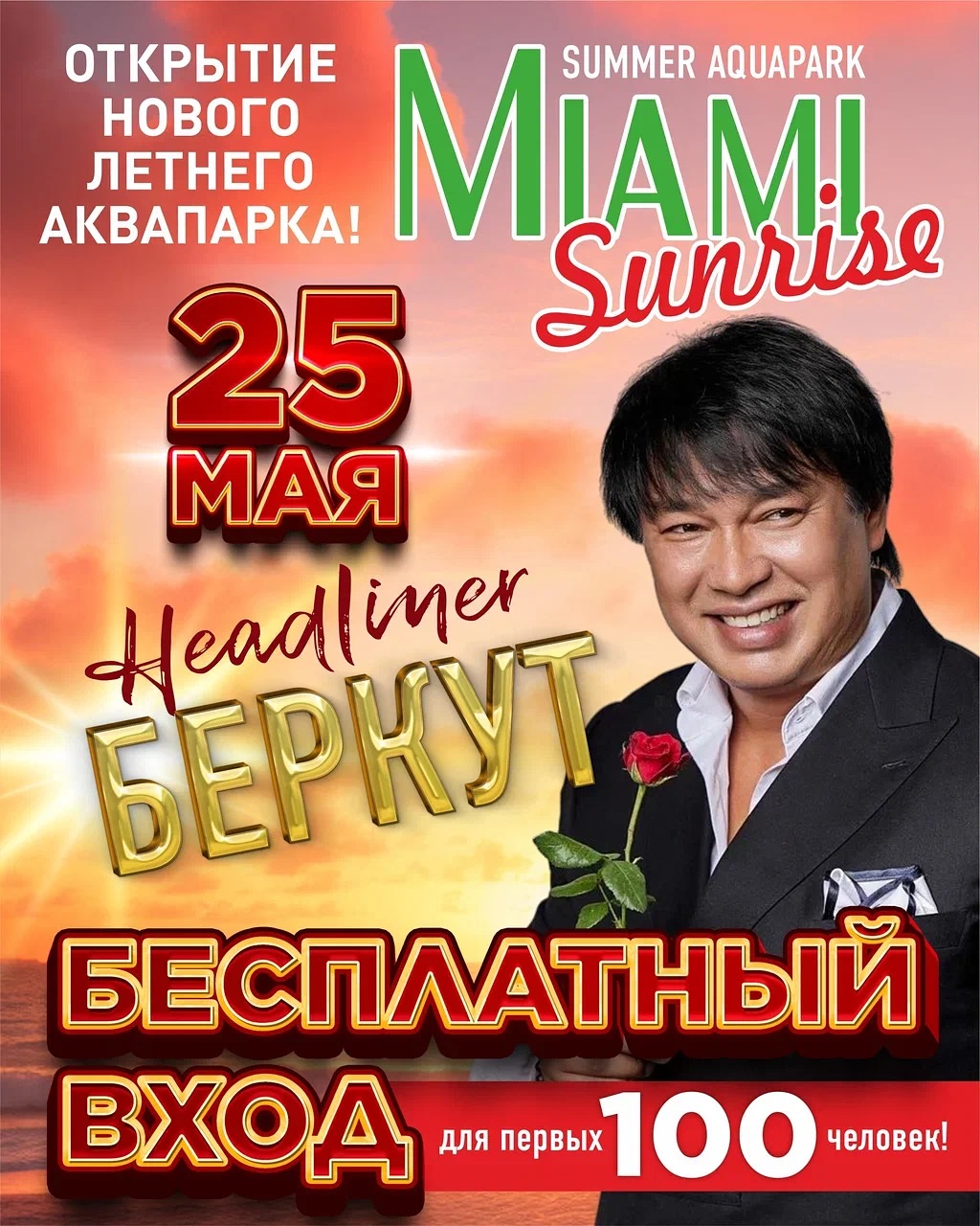 Miami Sunrise — открытие нового летнего аквапарка! 25 мая — старт лета, которого вы ждали или Первым 100 гостям вход бесплатный!!